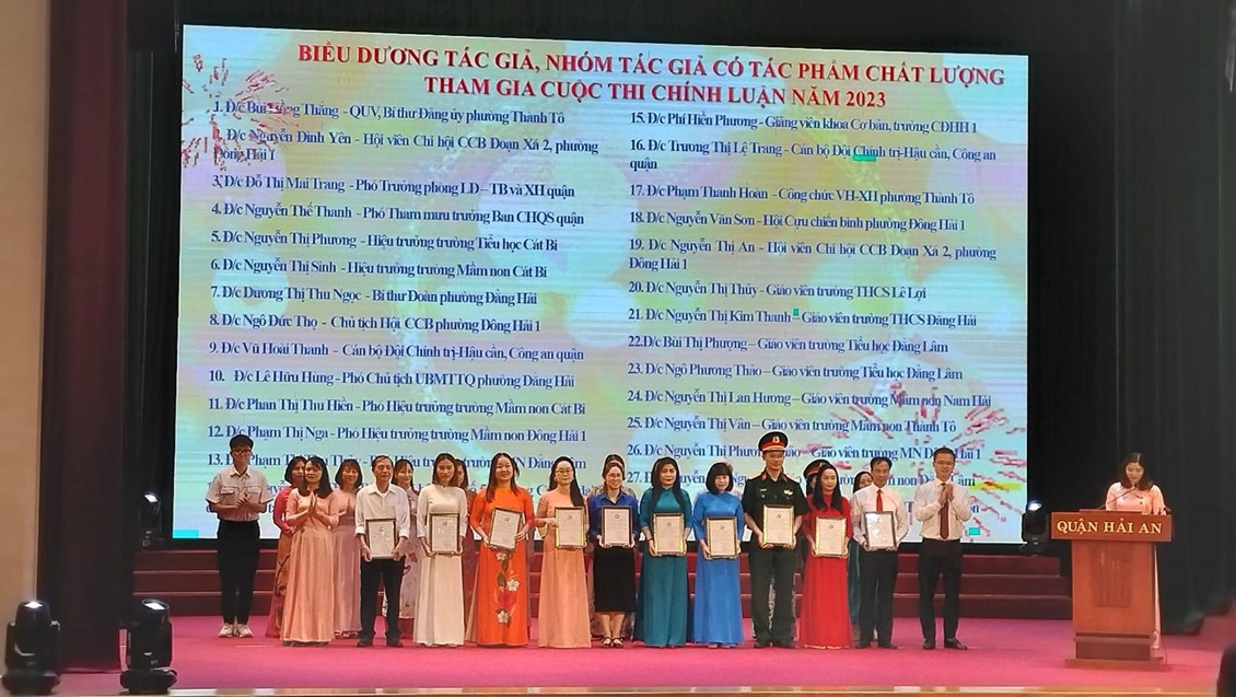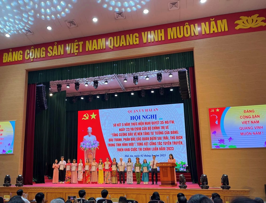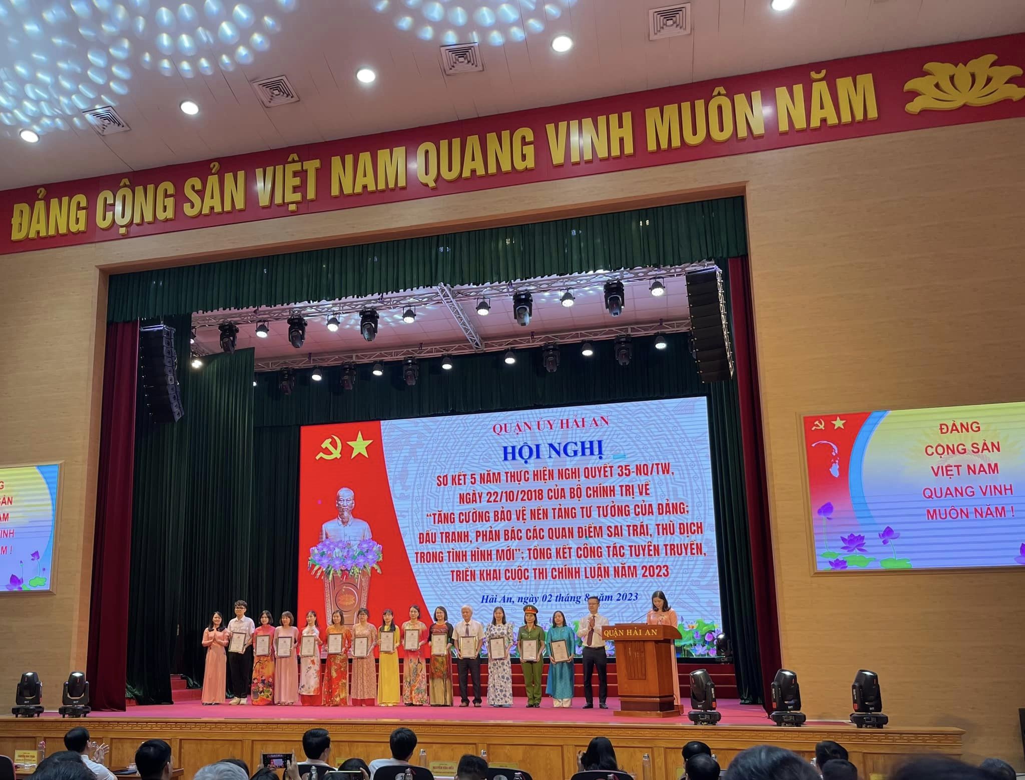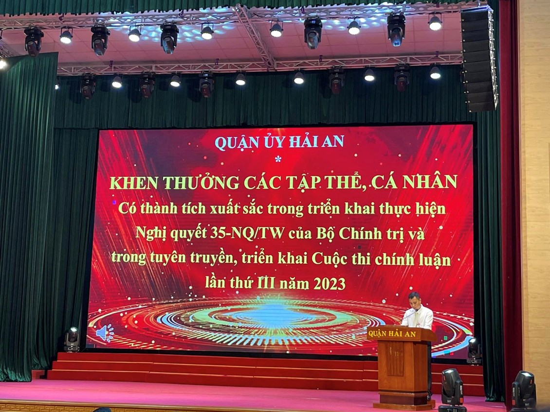 QUẬN UỶ HẢI AN KHEN THƯỞNG CÁC TẬP THỂ, CÁ NHÂN CÓ THÀNH THÀNH TÍCH XUẤT SẮC TRONG TRIỂN KHAI, THỰC HIỆN NGHI QUYẾT 35-NQ/TW CỦA BỘ CHÍNH TRỊ VÀ TRONG TUYÊN TRUYỀN, TRIỂN KHAI CUỘC THI CHÍNH LUẬN LẦN THỨ III, NĂM 2023