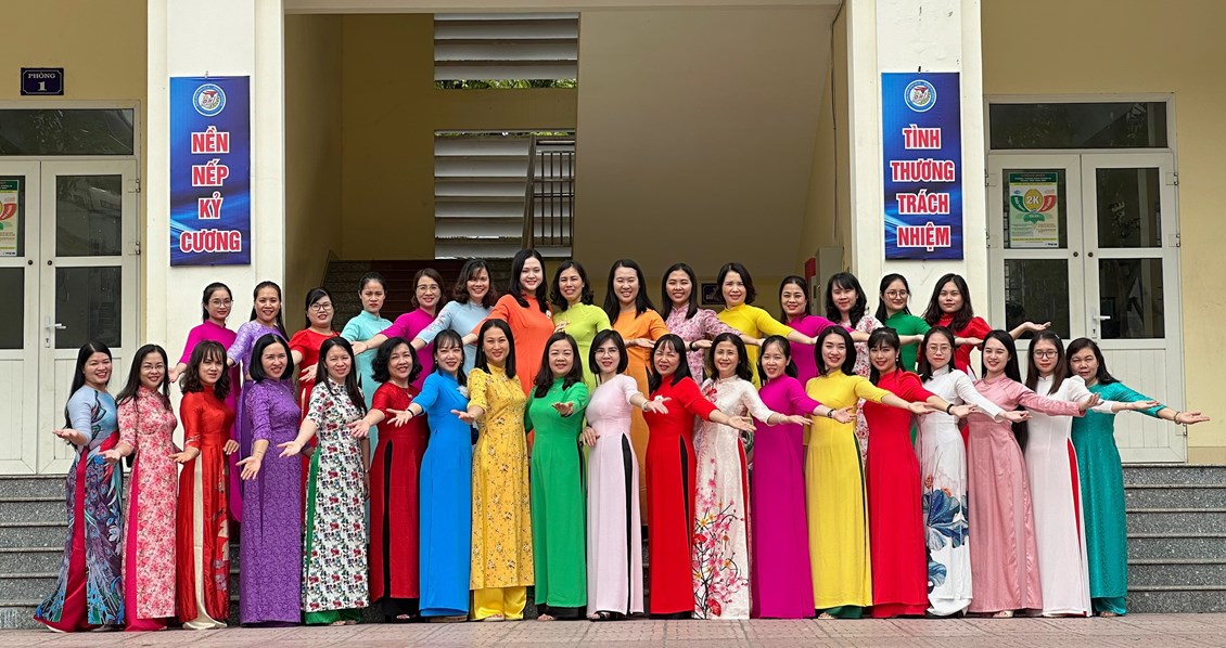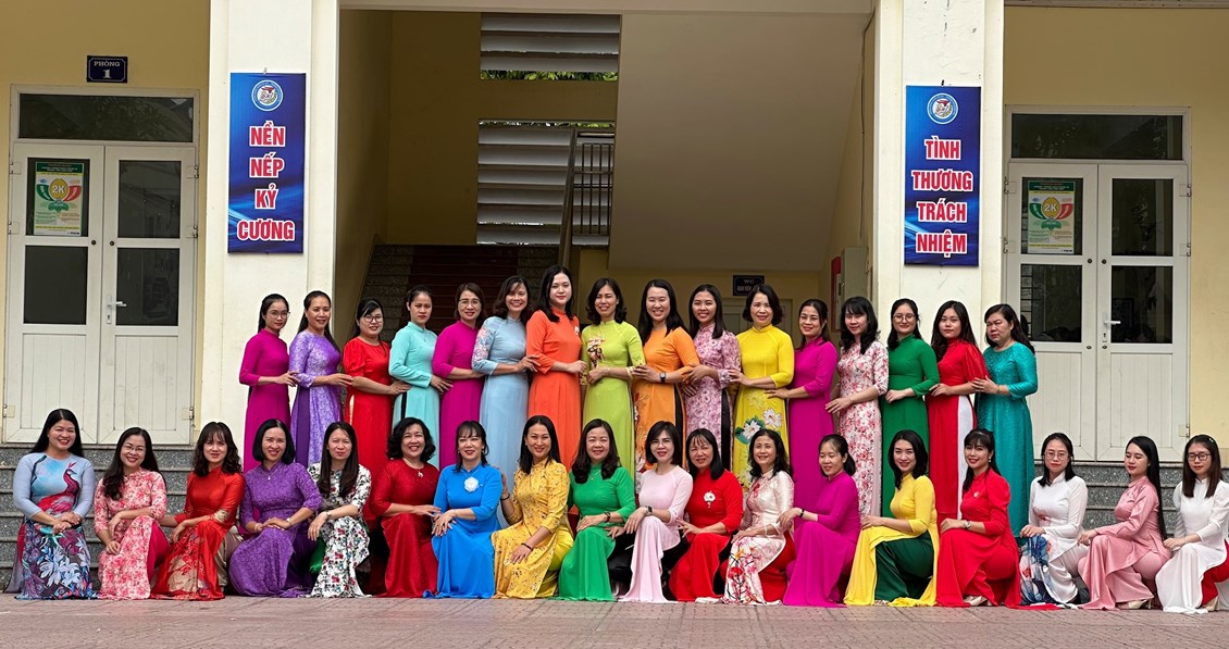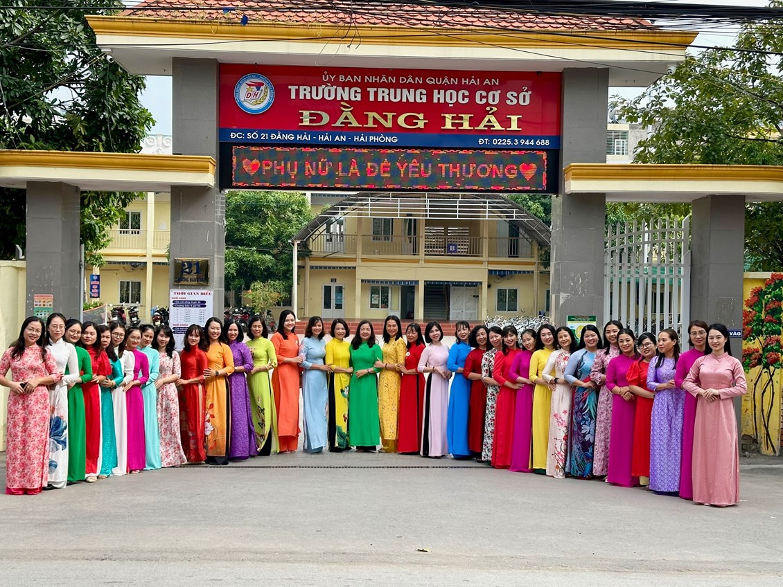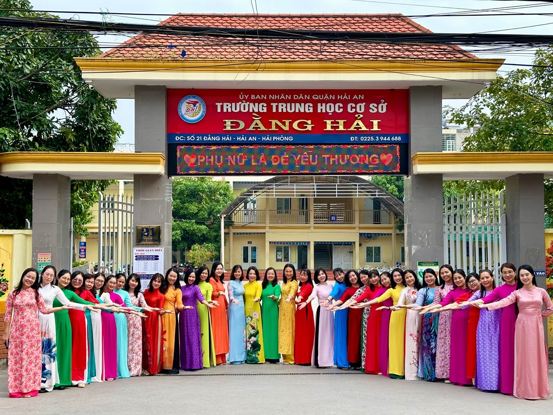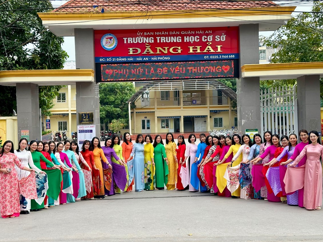 Chào mừng kỷ niệm 93 năm ngày thành lập Hội Liên hiệp Phụ nữ Việt Nam (20/10/1930-20/10/2023) và 13 năm ngày Phụ nữ Việt Nam (20/10/1930-20/10/2023), cán bộ và giáo viên trường THCS Đằng Hải đã đồng loạt mặc áo dài đến công sở, góp phần tạo nên những vườn hoa thắm sắc hương trên cả nước.