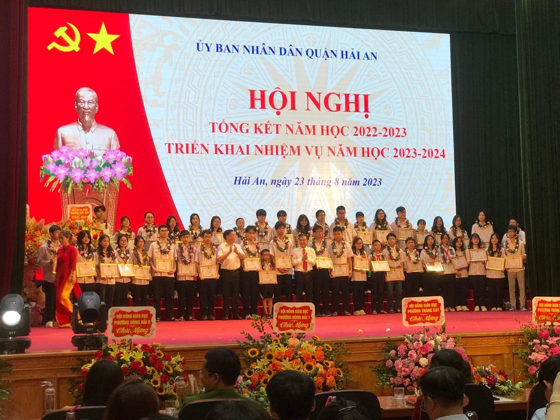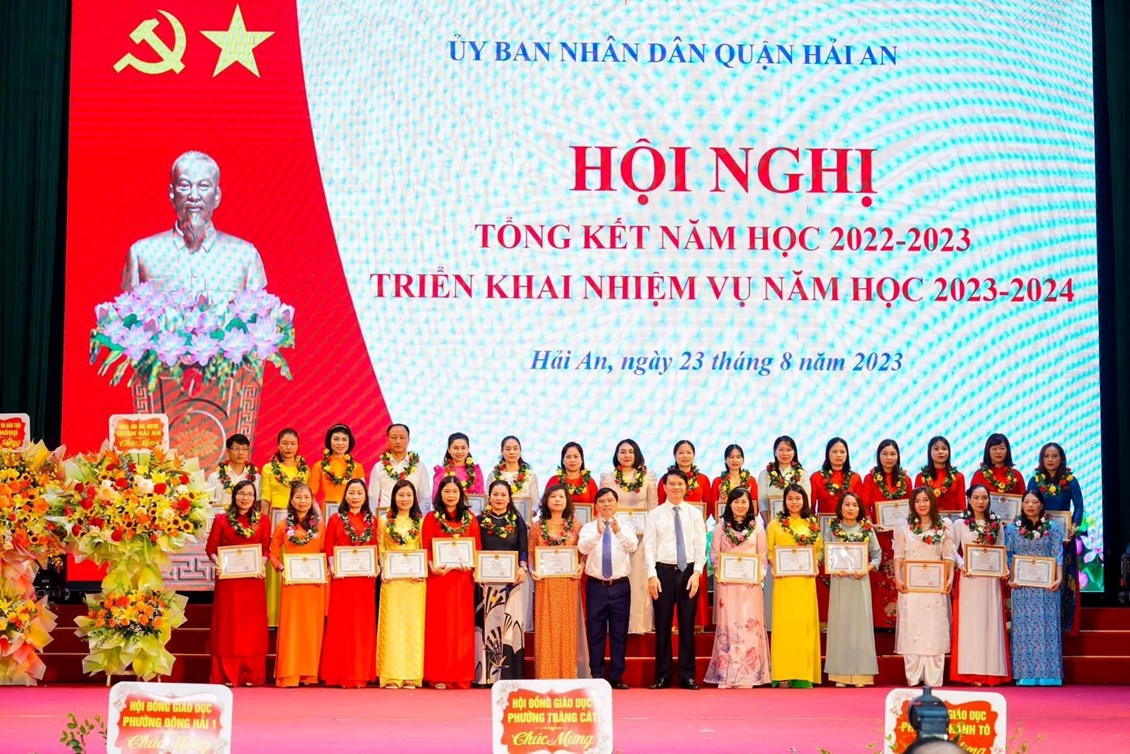 Sáng 23/8/2023, quận Hải An tổ chức Hội nghị tổng kết năm học 2022-2023 và triển khai nhiệm vụ năm học 2023-2024; Biểu dương, khen thưởng các thầy giáo, cô giáo và các em học sinh đạt thành tích cao trong năm học 2022-2023.