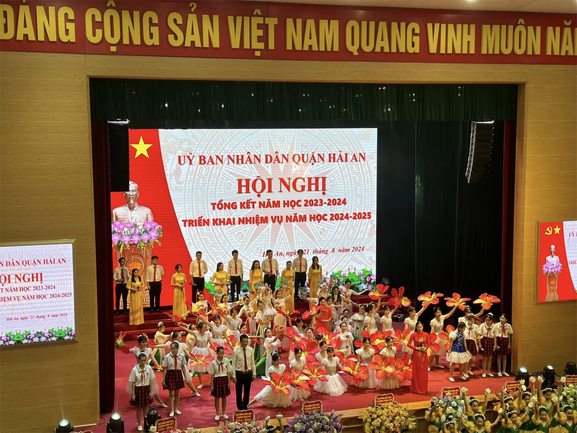 🎊🎊🎊Sáng ngày 21/8, UBND quận Hải An long trọng tổ chức Hội nghị tổng kết năm học 2023-2024; triển khai nhiệm vụ năm học 2024-2025. Tới dự có các đồng chí: Phạm Quốc Hiệu – Phó giám đốc Sở Giáo dục và Đào tạo thành phố, đ/c Nguyễn Thị Thu - Ủy viên Thành ủy, Bí thư Quận ủy, đ/c Dương Đình Ổn - PBTQU, Chủ tịch UBND quận, đ/c Nguyễn Anh Tuấn – PBTTTQU, cùng các đồng chí UVBTVQU, Chủ tịch UBMTTQVN quận, trưởng các phòng, ban, đơn vị thuộc quận, lãnh đạo các phường, các nhà trường, các giáo viên, học sinh được biểu dương, khen thưởng.