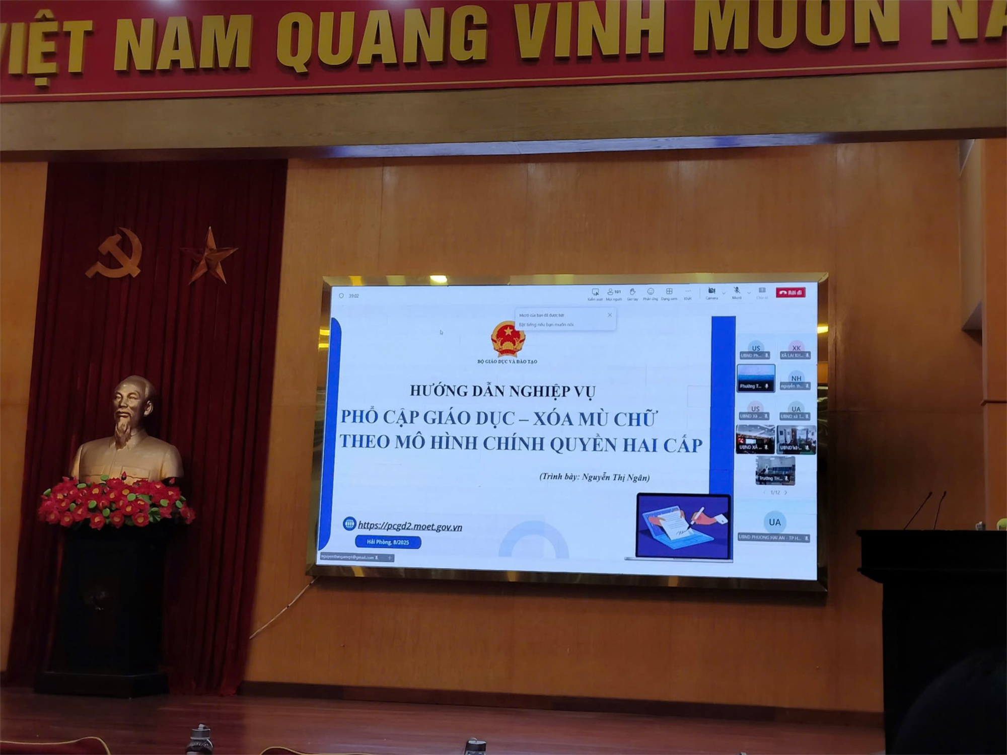 Chiều ngày 25.8 Sở GD tổ chức Hội nghị tập huấn và triển khai hướng dẫn phần mềm phổ cập giáo dục, xóa mù chữ năm 2025 dưới hình thức trực tuyến tại Hội trường trụ sở Đảng Uỷ- HĐND- UBND phường Hải An