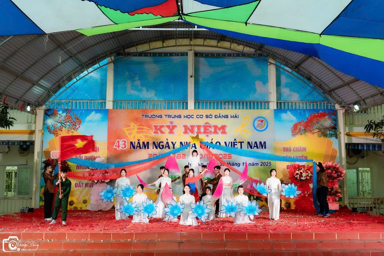 Ngày 19 tháng 11 năm 2025 trong không khí trang trọng và ấm áp, Trường THCS Đằng Hải đã tổ chức thành công lễ kỷ niệm 43 năm Ngày Nhà giáo Việt Nam (20/11). Đây là dịp để thầy và trò nhà trường cùng nhau ôn lại truyền thống “Tôn sư trọng đạo”, bày tỏ lòng tri ân sâu sắc đến những người lái đò thầm lặng. Buổi lễ có sự tham dự của Ban Giám hiệu nhà trường, các thế hệ thầy cô giáo, Ban đại diện cha mẹ học sinh, các đơn vị kết nghĩa cùng toàn thể các em học sinh.