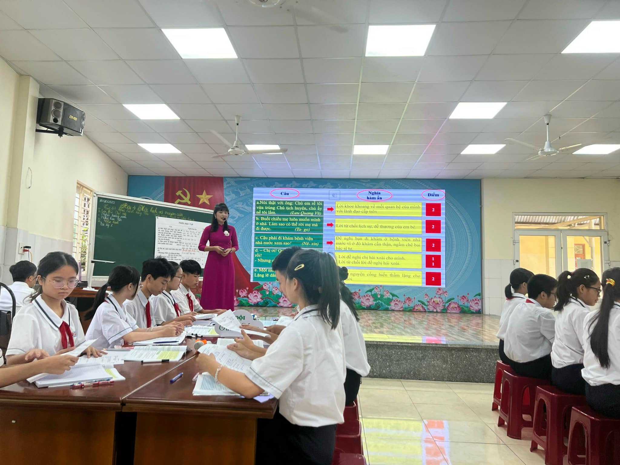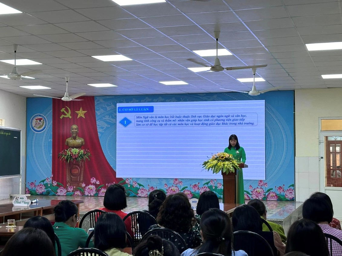 Tham dự chuyên đề: * Đại biểu Phòng Giáo dục và Đào tạo Quận Hải An - Đồng chí Nguyễn Thị Minh Thu - Trưởng phòng GD&ĐT - Đồng chí Trịnh Thị Diễn - chuyên viên phòng GD&ĐT * Đại biểu các trường: - Đại diện Ban Giám hiệu, tổ trưởng tổ KHXH cùng các đc giáo viên dạy Ngữ Văn các trường THCS trên địa bàn quận. *Về phía nhà trường: - Đồng chí Bùi Thị Mười- Bí thư Chi bộ, Hiệu trưởng nhà trường - Các đồng chí trong Ban giám hiệu cùng các đồng chí giáo viên tổ KHXH Chuyên đề gồm hai nội dung: phần báo cáo ngắn gọn, khoa học do cô giáo Lưu Thị Mỹ- tổ trưởng tổ KHXH thực hiện và tiết dạy: “Nghĩa tường minh, nghĩa hàm ẩn” nhiều sáng tạo, hấp dẫn và điểm nhấn trong tiết học chính là ứng dụng công nghệ số của cô giáo Vũ Thị Hương cùng các em học sinh lớp 8A4. Sau một thời gian làm việc nghiêm túc và hiệu quả, hội thảo của trường THCS Đằng Hải đã thành công tốt đẹp, được phòng GD&ĐT cùng các đồng nghiệp trong quận đánh giá rất cao, qua tiết dạy đã hình thành các năng lực nói, nghe, viết triệt để. Chuyên đề được đánh giá xếp loại Xuất sắc đạt 97,78 điểm. Trong quá trình thực hiện, chuyên đề đã nhận được sự quan tâm, chỉ đạo sát sao của các đồng chí lãnh đạo, chuyên viên phòng GD&ĐT Hải An. Tại hội thảo, ý kiến chỉ đạo của đ/c Nguyễn Thị Minh Thu - Trưởng phòng GD&ĐT cùng các ý kiến đóng góp quý báu của các đồng nghiệp trong quận đã giúp trường THCS Đằng Hải nói riêng và các đồng chí GV giảng dạy môn Ngữ Văn toàn quận nói chung có thêm nhiều bài học kinh nghiệm, có cái nhìn toàn diện, sâu sắc hơn về hoạt động đổi mới phương pháp dạy- học theo định hướng phát triển năng lực học sinh trong chương trình GDPT 2018.