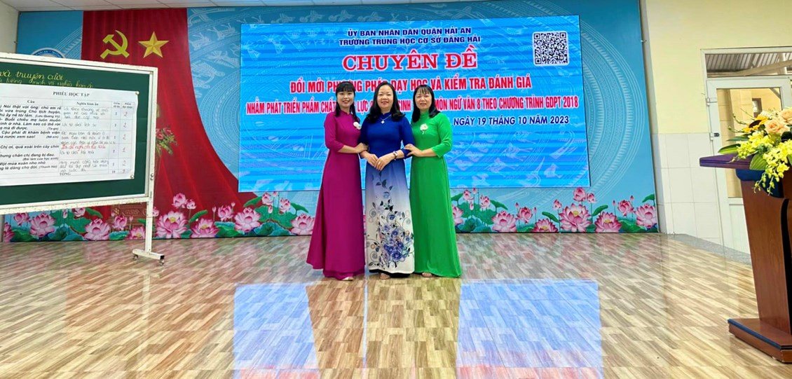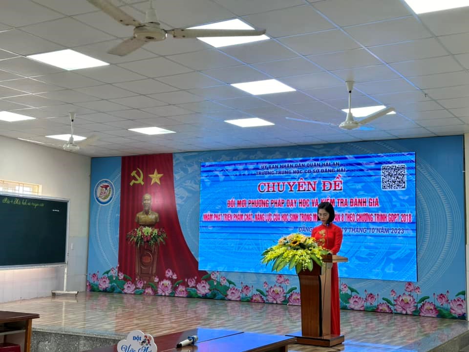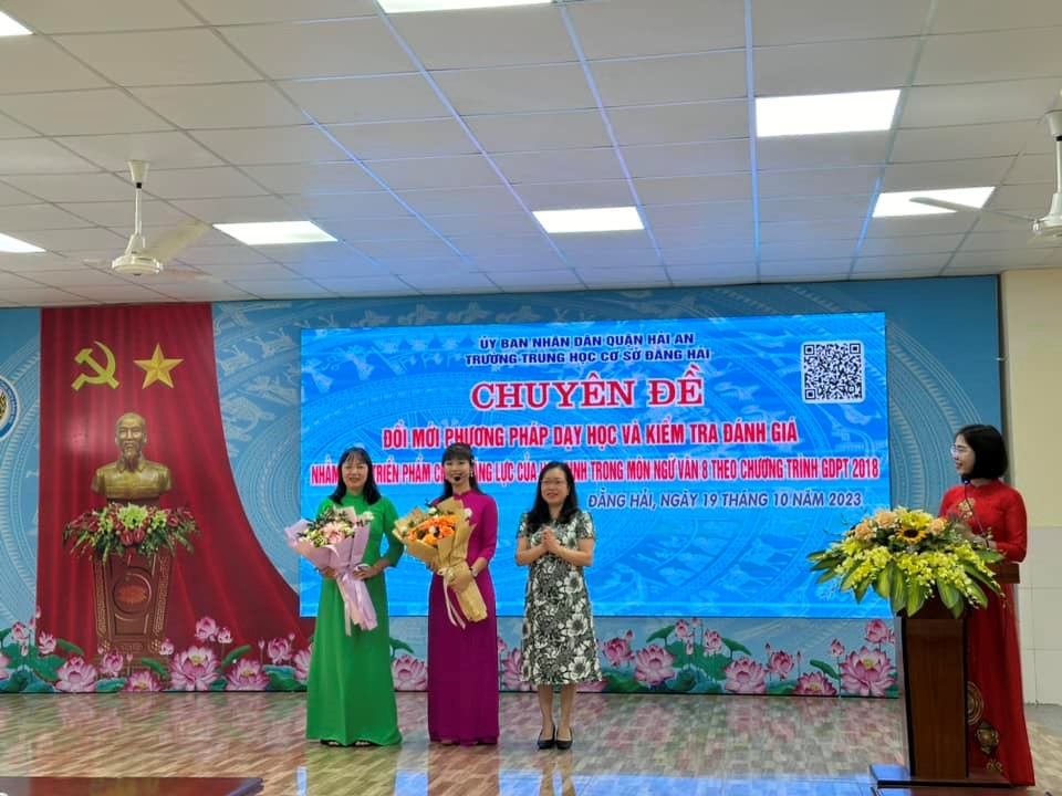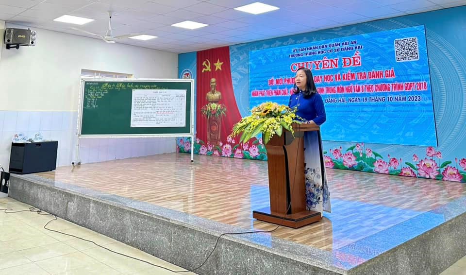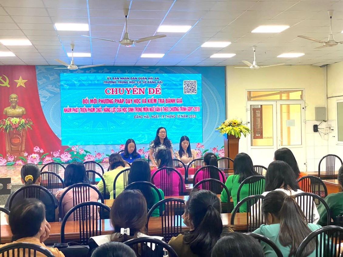 Nhằm hướng tới việc dạy học phát triển năng lực học sinh theo chương trình GDPT 2018; Phòng Giáo dục quận Hải An chỉ đạo trường THCS Đằng Hải tổ chức “Chuyên đề Đổi mới phương pháp dạy học và kiểm tra đánh giá nhằm phát triển phẩm chất năng lực của học sinh trong môn Ngữ Văn” cấp quận vào chiều 19/10/2023
