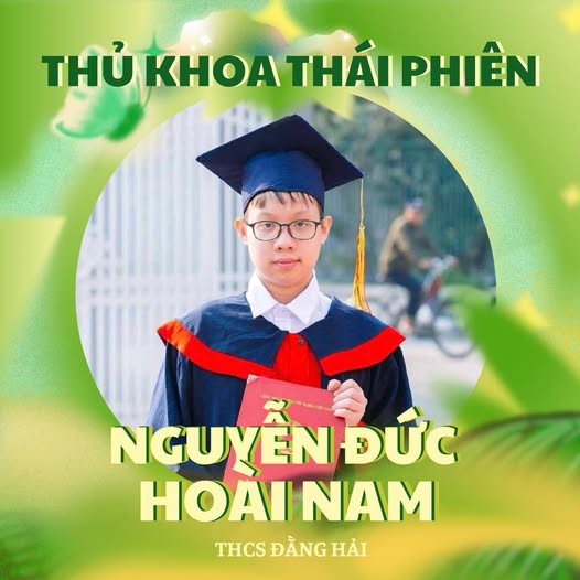 ✨ Kì thi tuyển sinh vào 10 năm học 2025 – 2026 đã chính thức khép lại với thật nhiều cảm xúc. Giữa bao nỗ lực và quyết tâm của các sĩ tử, một cái tên đã xuất sắc vươn lên vị trí cao nhất: 𝐍𝐠𝐮𝐲𝐞̂̃𝐧 𝐃̶𝐮̛́𝐜 𝐇𝐨𝐚̀𝐢 𝐍𝐚𝐦 lớp 9A4 trường 𝐓𝐇𝐂𝐒 𝐃̶𝐚̆̀𝐧𝐠 𝐇𝐚̉𝐢 đã chính thức trở thành tân thủ khoa K66 trường THPT Thái Phiên với số điểm 𝟐𝟗 (Toán:10 điểm, Anh: 10 điểm; Văn: 9 điểm)
