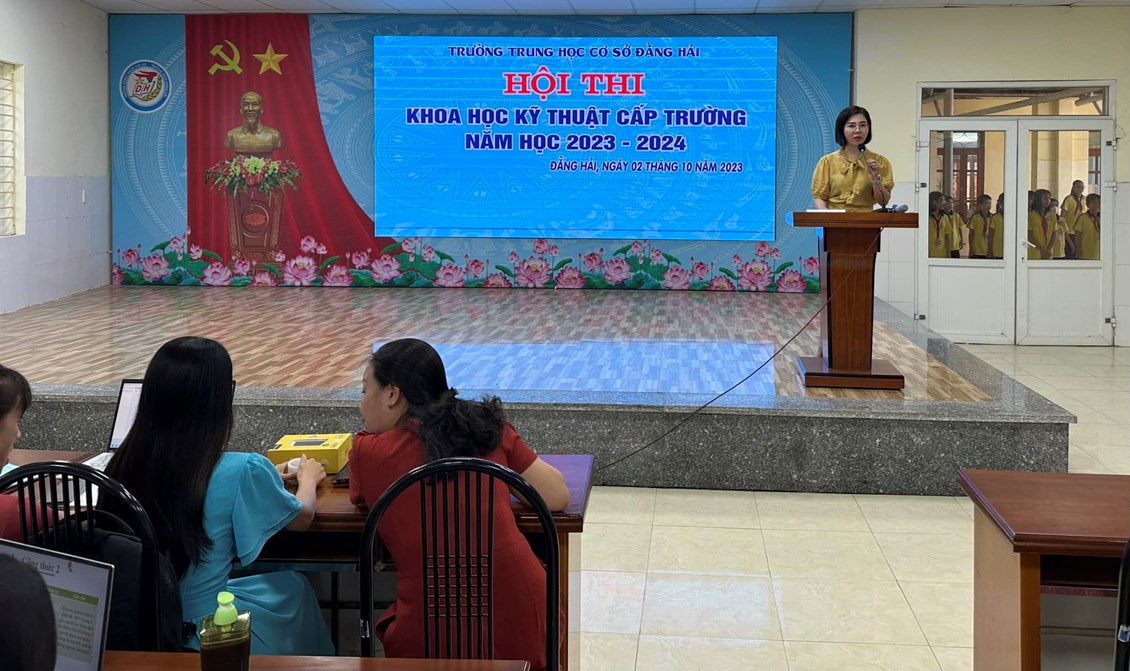 Vào 8h30 ngày 2/10/2023 các em học sinh trường THCS Đằng Hải đã tham gia cuộc thi Khoa học kĩ thuật cấp trường. Toàn trường có 06 sản phẩm dự thi với các lĩnh vực khác nhau như: Khoa học hành vi, phần mềm hệ thống, vật lý thiên văn…
