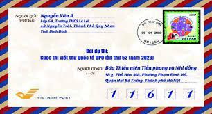 - Phong bì thư cần ghi rõ: Bài dự thi Cuộc thi Viết thư Quốc tế UPU lần thứ 52 (năm 2023).