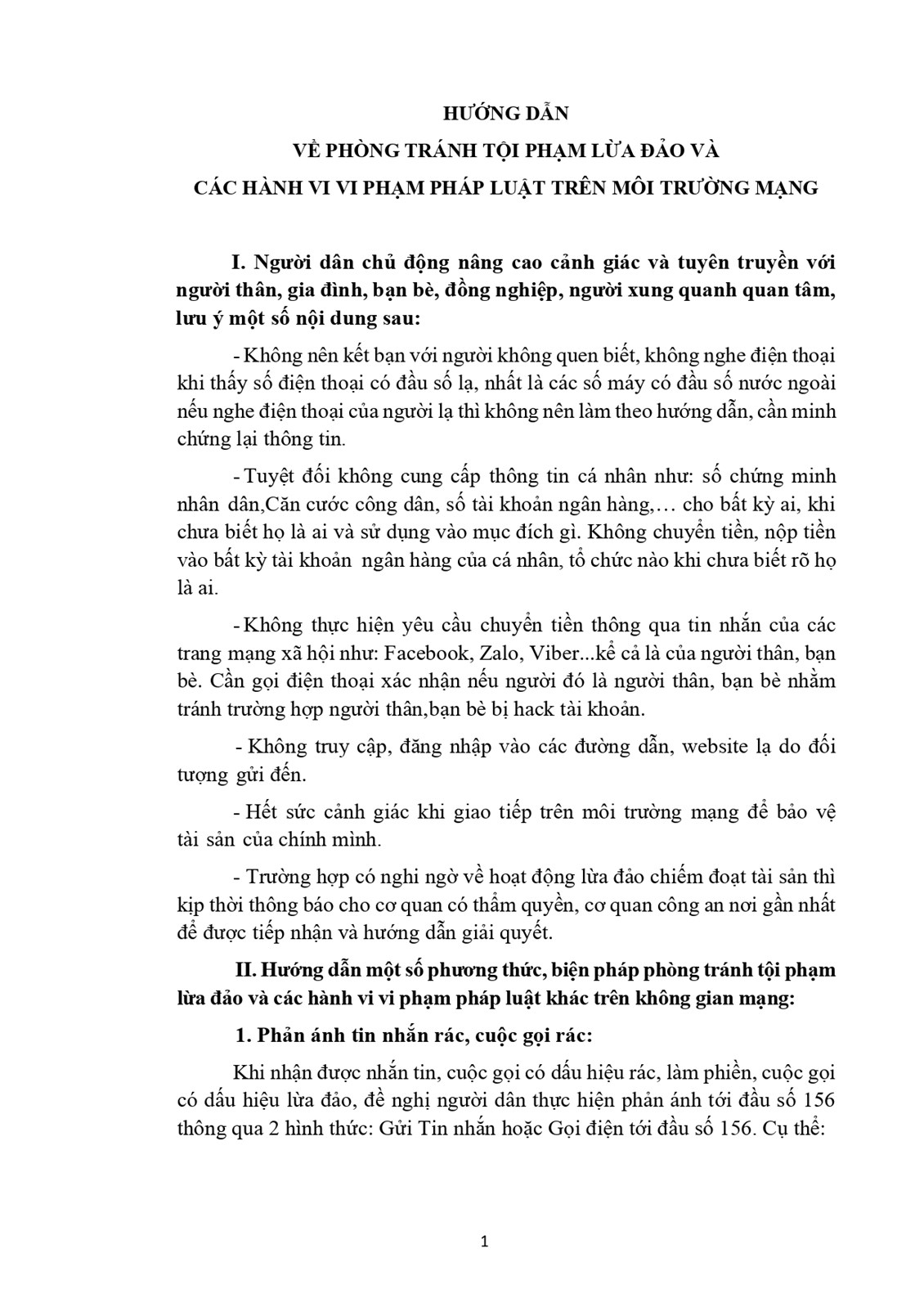 Hướng dẫn về phòng tránh tội phạm lừa đảo và các hành vi vi phạm pháp luật trên môi trường mạng