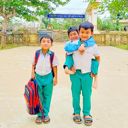 Mỗi tuần một câu chuyện đẹp: Hai học sinh thay nhau cõng bạn đến trường