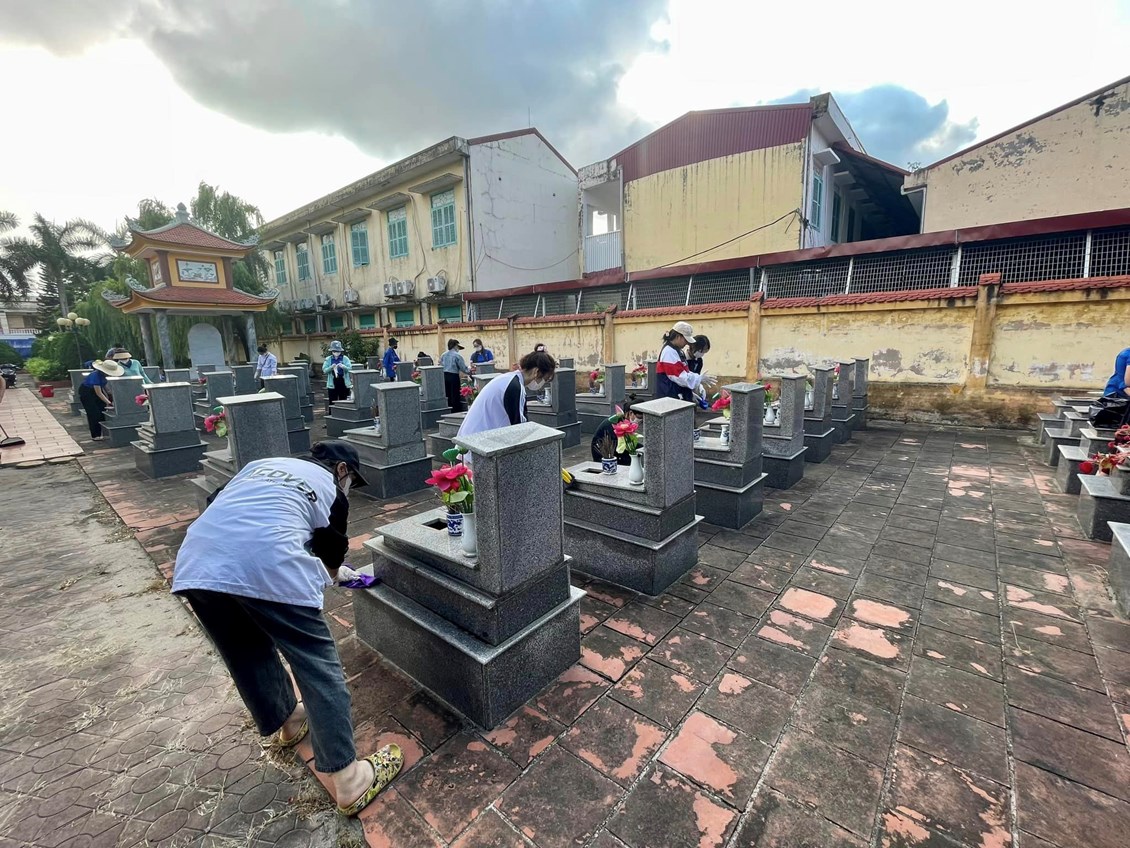 Chăm sóc nghĩa trang Liệt sĩ phường nhân dịp kỷ niệm 76 năm ngày thương binh Liệt sỹ (27/7/1947-27/7/2023)