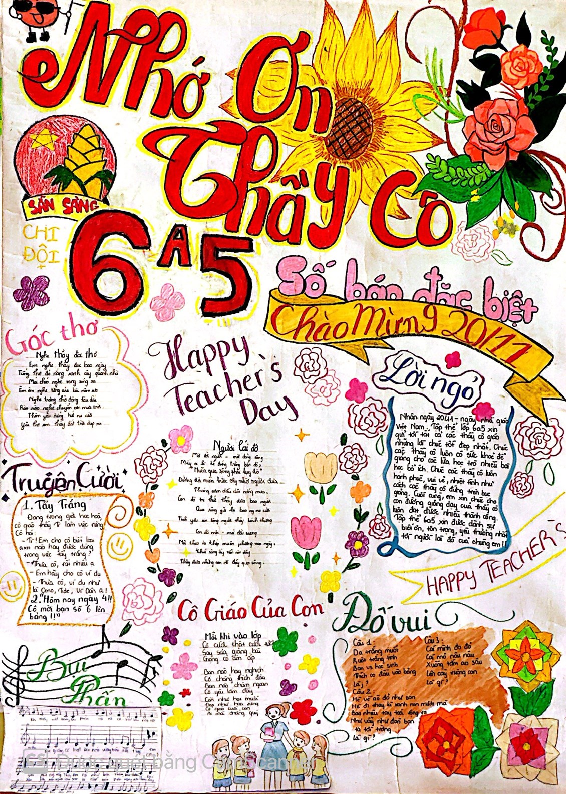 Bám sát chủ đề cuộc thi, các chi đội đã chọn cho mình những ý tưởng mới lạ và kết hợp truyền tải nhiều thông điệp tri ân những người thầy, người cô đã và đang dìu dắt mình trên hành trình chinh phục tri thức. Khi được ban truyền thông, đội PTMN của Liên đội phòng vấn, rất nhiều lớp các bạn học sinh đều trả lời lí do lựa chọn cách làm báo tường và tập san truyền thống thay vì các sản phẩm điện tử vì các em cảm thấy tự tay mình viết lên những dòng cảm nghĩ, vẽ lên những bức tranh nhiều màu sắc, gửi gắm tâm tư tình cảm biết ơn của mình đến với thầy cô bằng những nét chữ nắn nót sẽ có ý nghĩa hơn.
