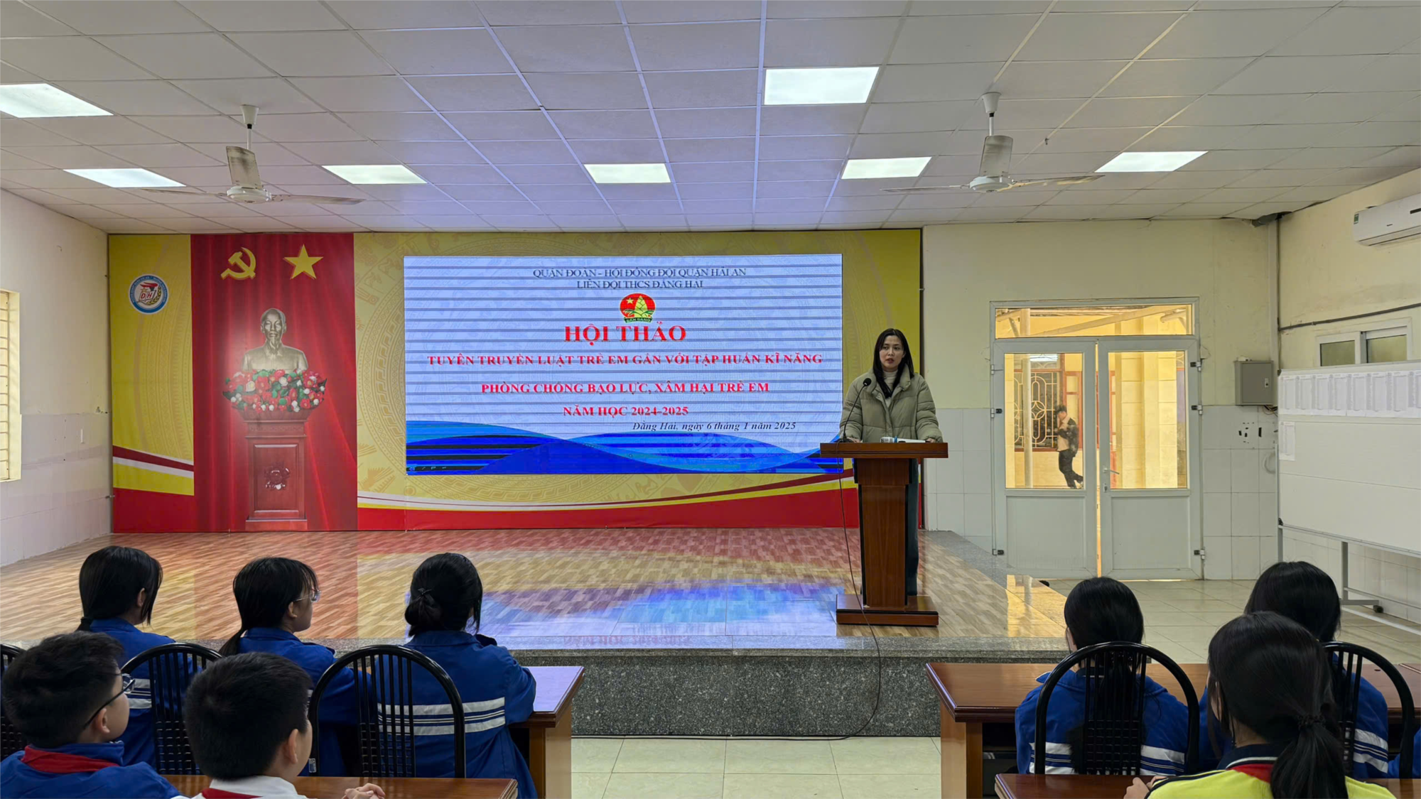 Vào ngày 6/1/2025,  Liên đội trường THCS Đằng Hải tổ chức tuyên truyền về Luật trẻ em gắn với tập huấn kỹ năng phòng, chống bạo lực và xâm hại trẻ em. Đây là một hoạt động quan trọng nhằm nâng cao nhận thức của cộng đồng và tăng cường sự bảo vệ đối với trẻ em.