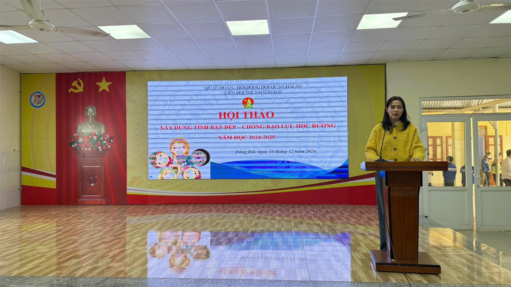 Vào ngày 16 tháng 12 năm 2024, Liên đội THCS Đằng Hải đã tổ chức Hội thảo tuyên truyền “Xây dựng tình bạn đẹp – Nói không với bạo lực học đường”.