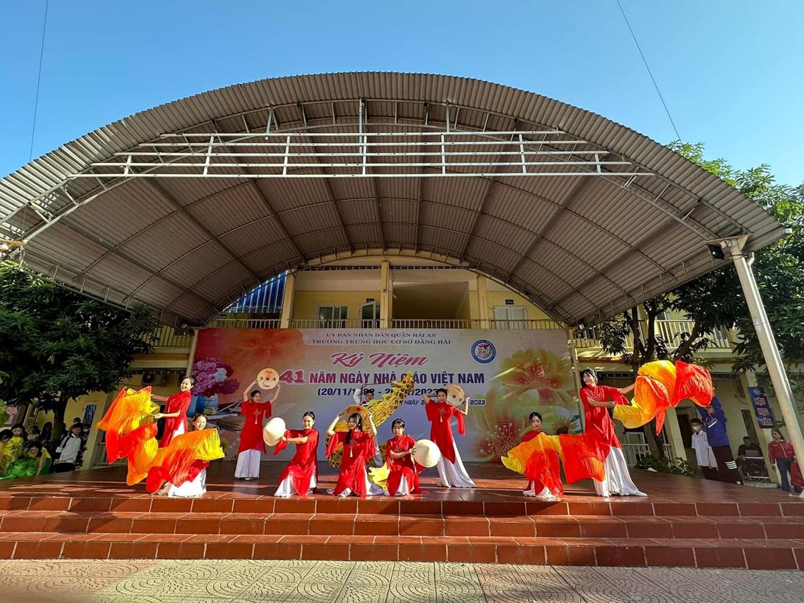 Những ngày này, trên sân trường, trong lớp học, đâu đâu cũng rộn ràng tiếng hát, tiếng cười, không khí rộn ràng, vui tươi... Học sinh trường THCS Đằng Hải tích cực, hăng say tập luyện các tiết mục văn nghệ để chuẩn bị cho chương trình "Ngàn lời tri ân"- món quà tuyệt vời gửi tặng đến tất cả các Thầy Cô giáo nhân ngày Nhà Giáo Việt Nam 20/11.