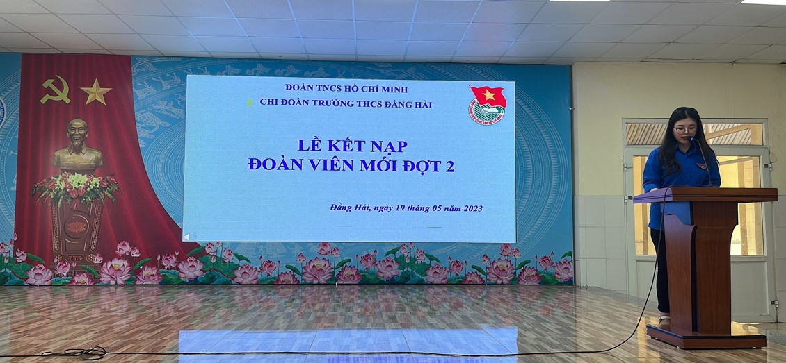 15 học sinh của trường THCS Đằng Hải được kết nạp đoàn viên hôm nay là những thành viên tiêu biểu của “Lớp đoàn viên nhân kỷ niệm 133 năm ngày sinh Chủ tịch Hồ Chí Minh (19/5/1890-19/5/2023), các đồng chí đều là những thanh niêu ưu tú, có phẩm chất, đạo đức tốt, có nhiều cố gắng, nỗ lực trong học tập. Tin tưởng rằng 15 đoàn viên thanh niên được kết nạp trong dịp này sẽ thực hiện tốt các nhiệm vụ của người đoàn viên, nỗ lực học tập, rèn luyện phấn đấu để nâng cao hiểu biết, khẳng định được vị trí, vai trò của mình trong tổ chức Đoàn, một tổ chức đại diện cho quyền và lợi ích của thanh thiếu nhi, là “Đội dự bị tin cậy của Đảng”.