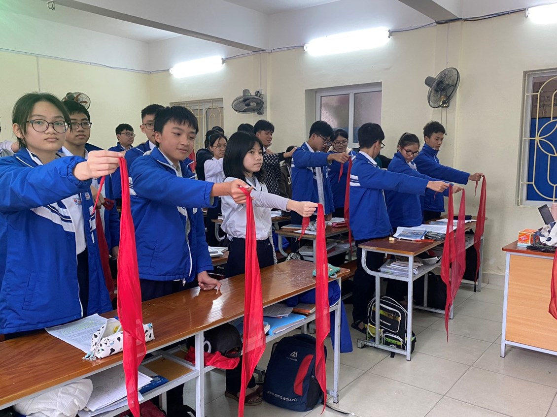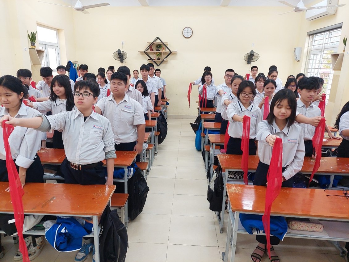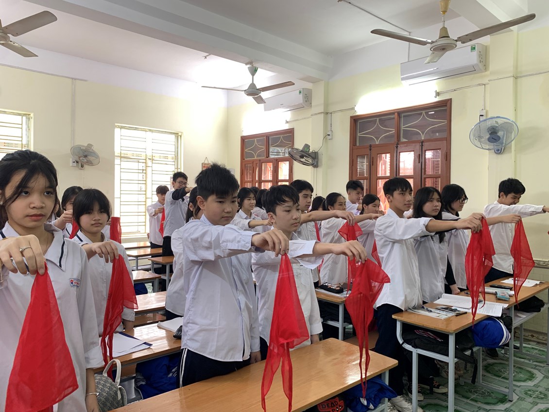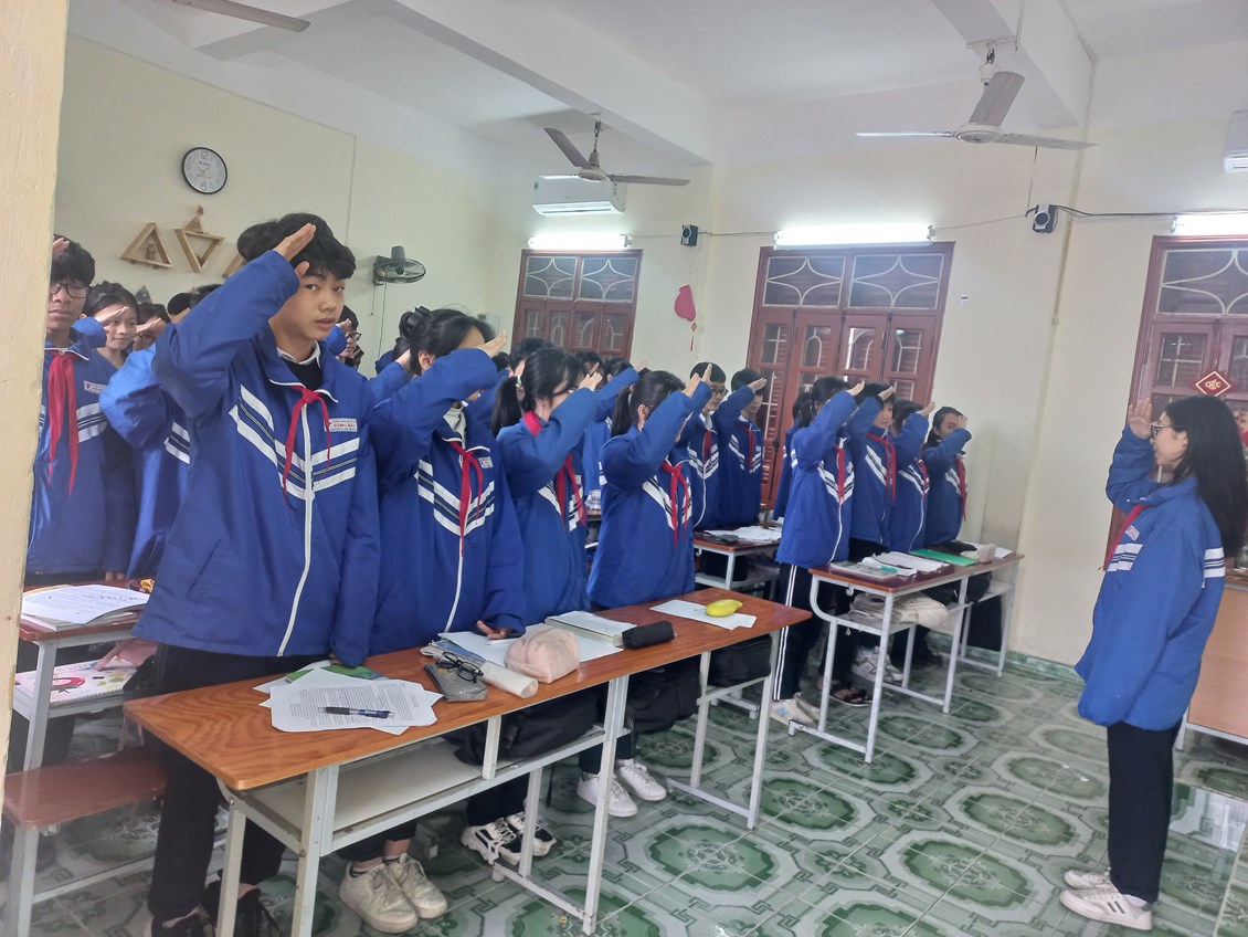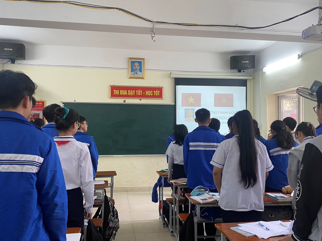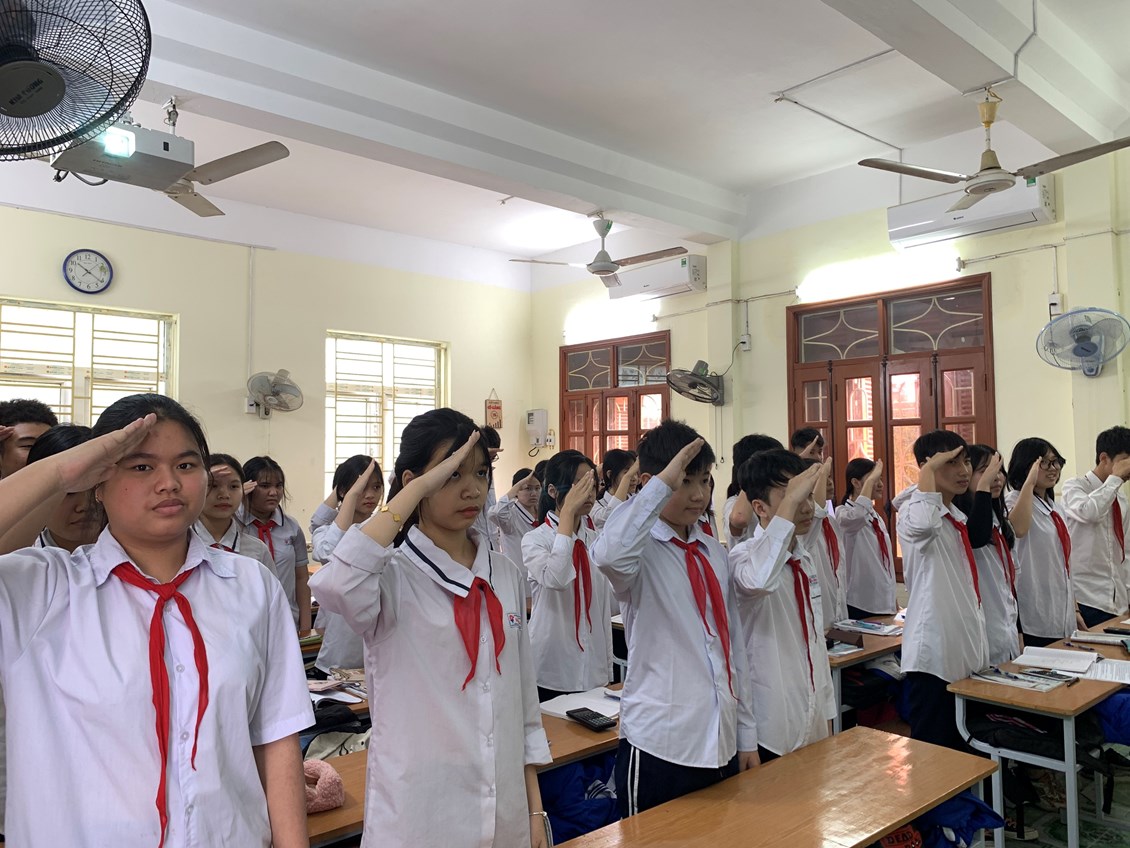 Mở đầu buổi lễ là lễ chào cờ thiêng liêng, cũng là lần giơ tay chào cuối cùng của 320 học sinh lớp 9 với tư cách là đội viên Đội Thiếu niên Tiền phong.