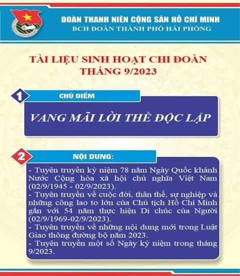Tài liệu sinh hoạt Chi đoàn tháng 09/2023