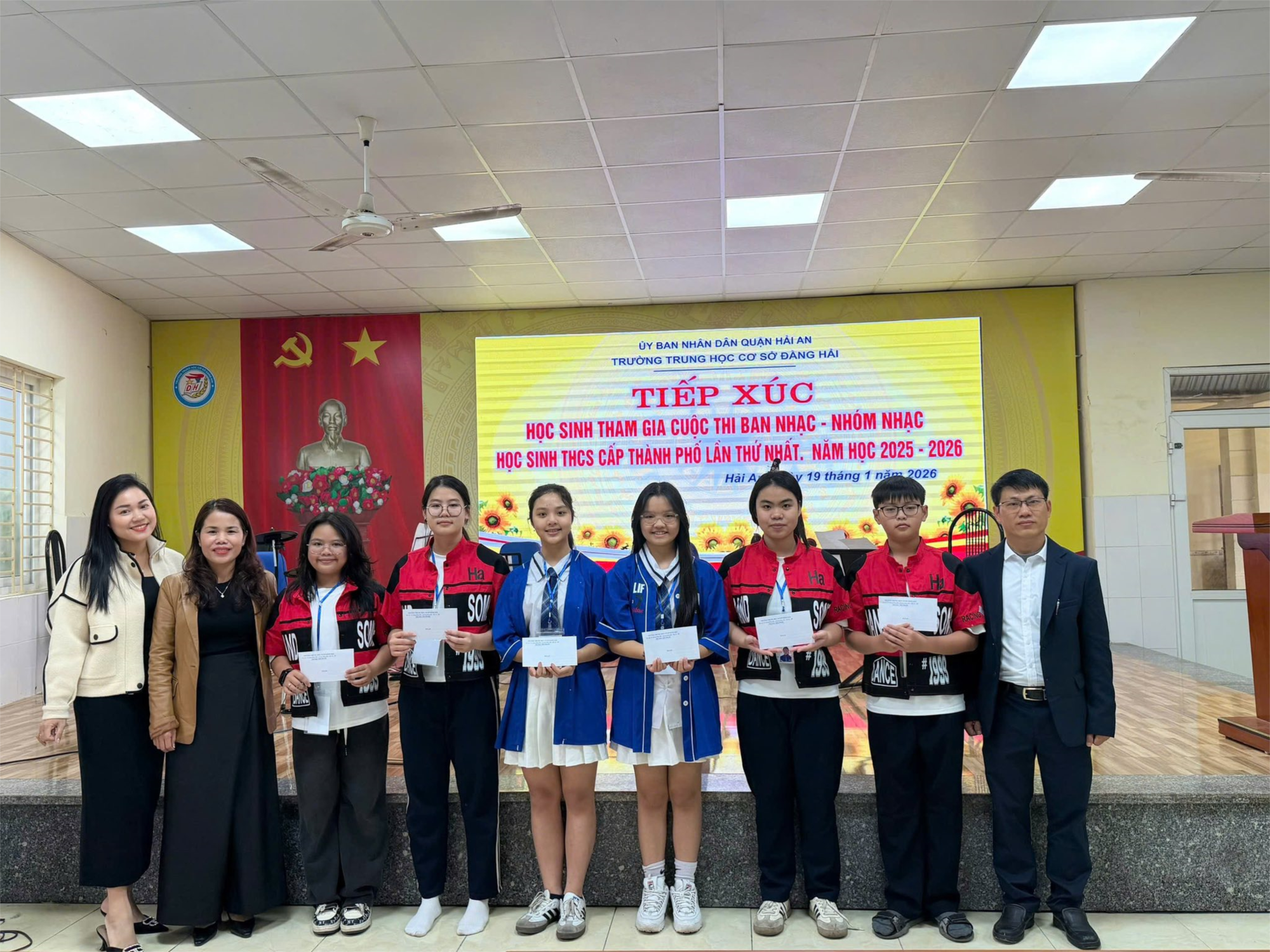 💥💥💥Thực hiện Thông báo của Sở Giáo dục và Đào tạo Hải Phòng về việc tổ chức Cuộc thi Ban nhạc/Nhóm nhạc học sinh trung học cơ sở, trung học phổ thông năm học 2025–2026, sáng ngày 19/01/2026, trường THCS Đằng Hải tổ chức tiếp xúc động viên các em học sinh tham gia vòng sơ khảo của cuộc thi tại Nhà văn hóa phường An Dương, thành phố Hải Phòng vào ngày 21/01/2026 theo Thông báo số 127/TB-SGDĐT ngày 10/01/2026 của Sở Giáo dục và Đào tạo thành phố Hải Phòng.