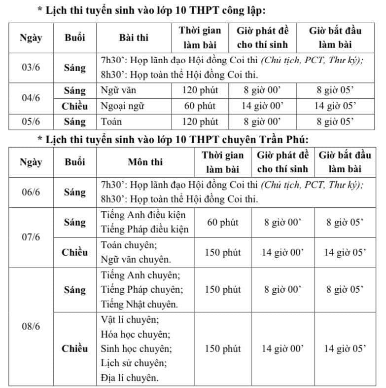 Công bố lịch thi vào lớp 10 THPT thành phố Hải Phòng năm học 2024-2025