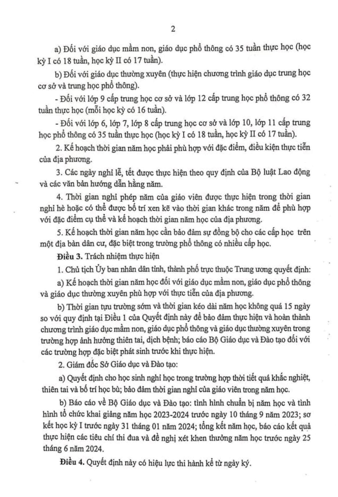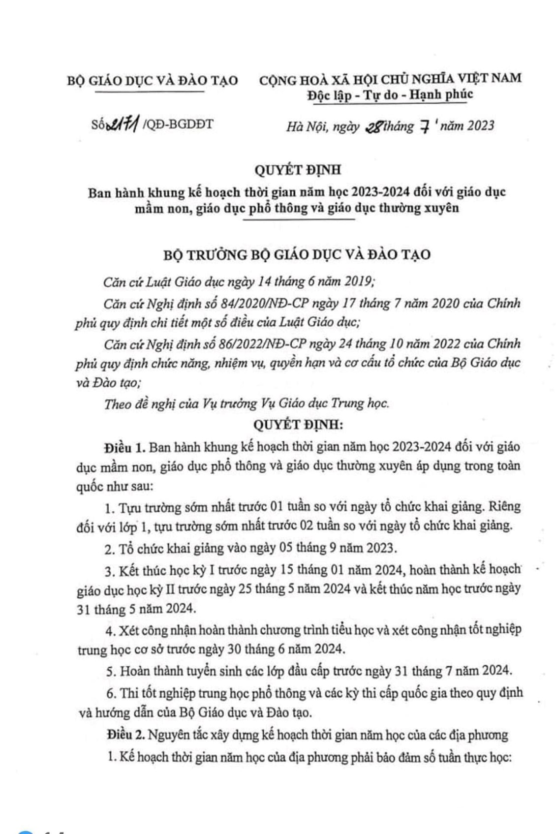 Khung kế hoạch, thời gian năm học 2023-2024 của Bộ GD&ĐT và UBND TP Hải Phòng.
