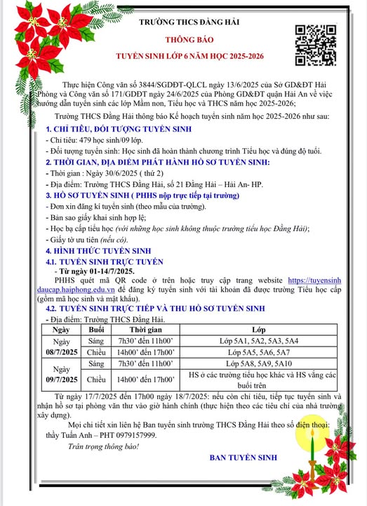 Thông báo điều chỉnh Kế hoạch tuyển sinh lớp 6 năm học 2025-2026 ( Có thay đổi thời gian)