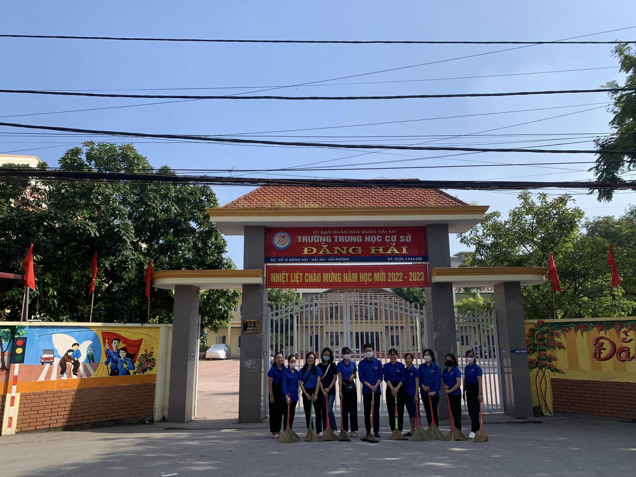 Sáng ngày 18/9/2022 chi đoàn giáo viên Trường THCS Đằng Hải đã tích cực tham gia hưởng ứng phong trào: tổ chức lao động, dọn dẹp vệ sinh khu vực trong khuôn viên nhà trường và khu cổng trường.Tẩy xóa, bóc dỡ biển quảng cáo rao vặt khu vực xung quanh cổng trường