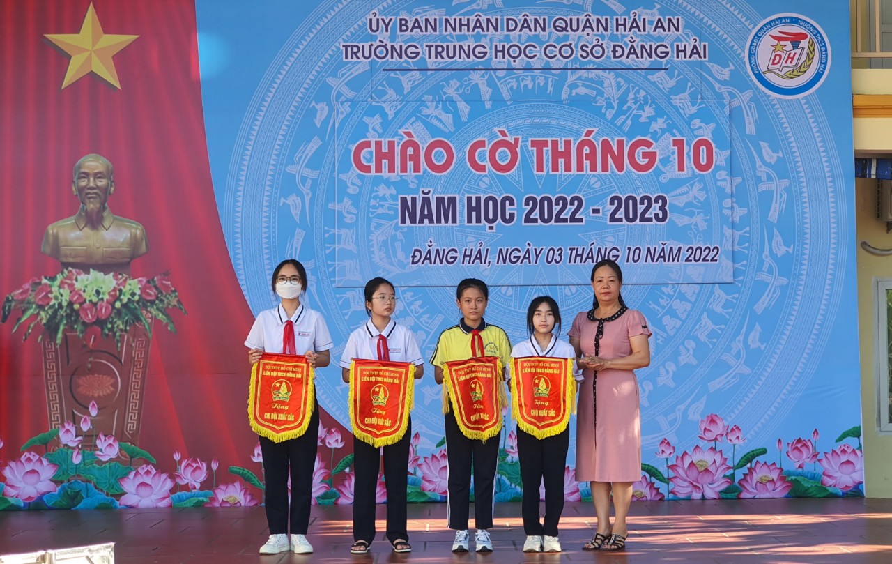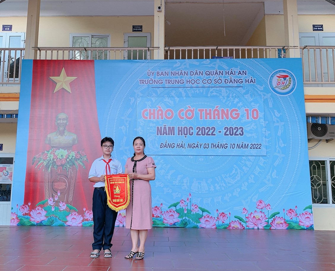 Vào 7h ngày 3 tháng 10 năm 2022 trường THCS Đằng Hải tổ chức lễ chào cờ tháng 10 nhằm tổng kết các hoạt động trong tháng 9 và triển khai các nhiệm vụ công tác tháng 10;