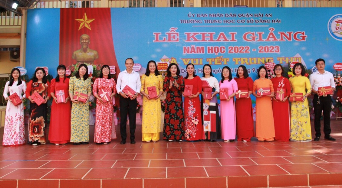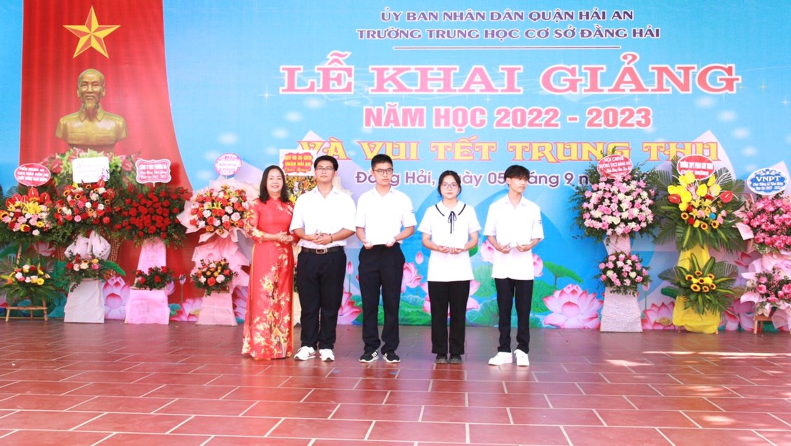 ✅Nhân dịp này, Trường THCS Đằng Hải đã biểu dương những giáo viên có thành tích xuất sắc có thành tích trong đào tạo, bồi dưỡng học sinh trong kỳ thi vào 10 THPT, khen thưởng các em học sinh có thành tích xuất sắc trong kỳ thi THPT và đỗ chuyên Trần Phú; tặng quà cho các em học sinh có hoàn cảnh khó khăn của nhà trường.