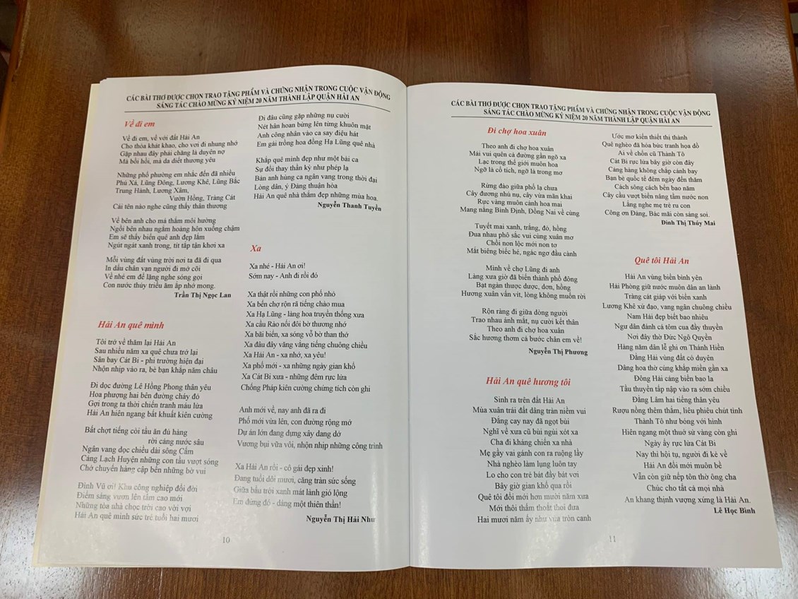 Cùng với không khí chào mừng ngày kỉ niệm 20 năm đầy phấn khởi, rạo rực trong cái nắng ấm của Hải An, những dòng thơ lại đưa chúng ta nhớ về những hồi ức, kỉ niệm đẹp, những trang lịch sử rực lửa. Nhìn lại mà nhìn đi, chúng ta thêm tự hào về một Hải An đã vươn mình rắn rỏi, mạnh mẽ và quyết tâm…
