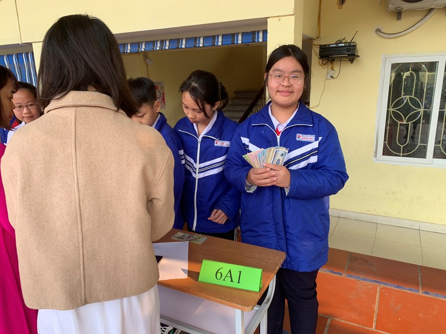 Số lượng tham gia: 100% các lớp trong nhà trường tham gia. Mỗi chi đội/ con lợn đất.Tổng số tiền thu được của 33 chi đội là : 18.668.000đồng (Mười tám triệu sáu trăm sáu mươi tám nghìn đồng chẵn.)