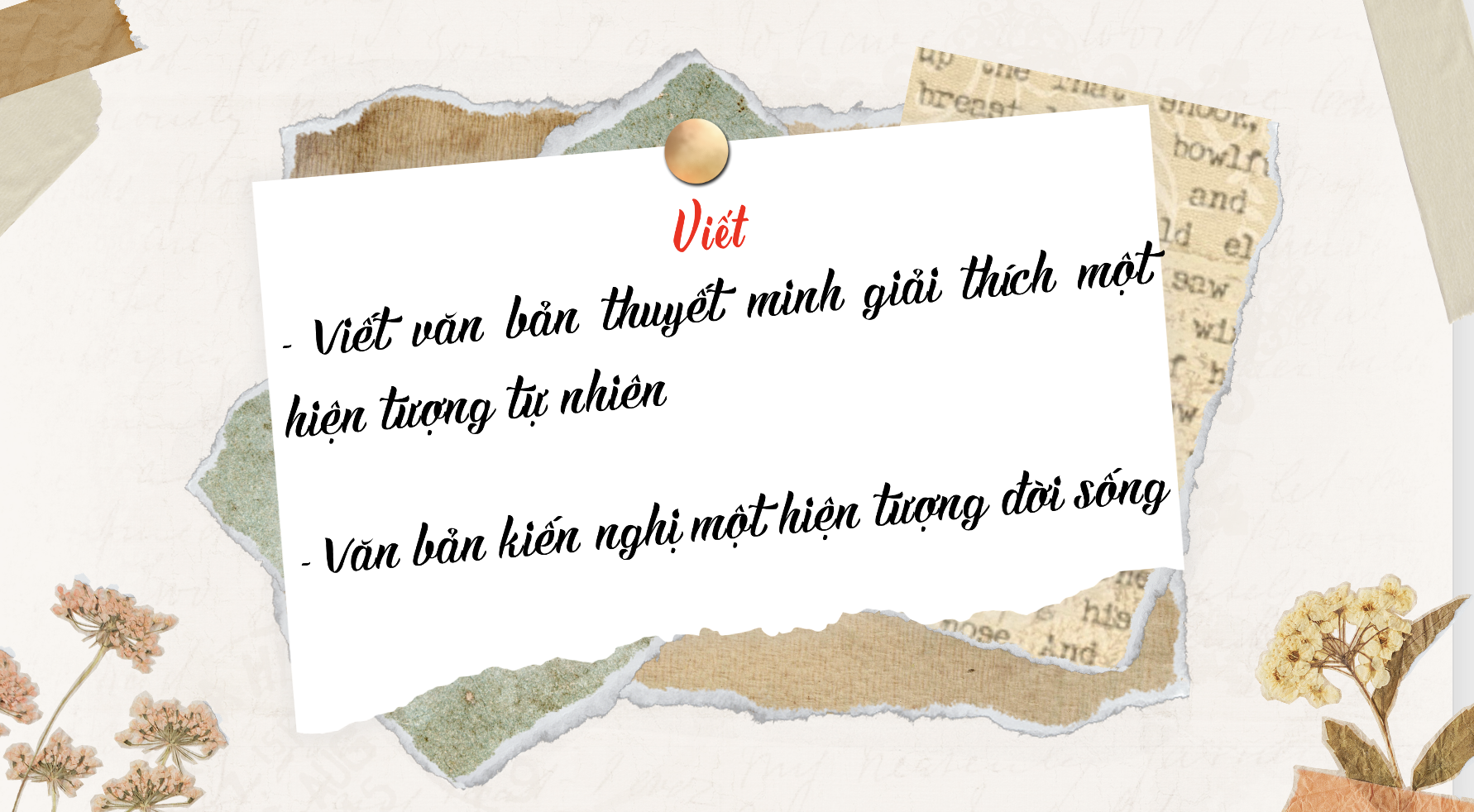 Giáo án điện tử: Môn Ngữ văn 8_ Viết bài văn thuyết minh giải thích một hiện tượng tự nhiên; văn bản kiến nghị một hiện tượng đời sống